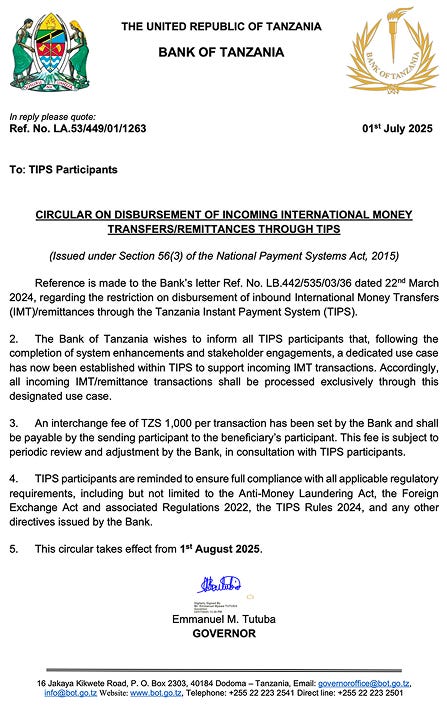 Tanzania's New Inbound Remittance Fee: The Good, the Bad, and the Ugly.